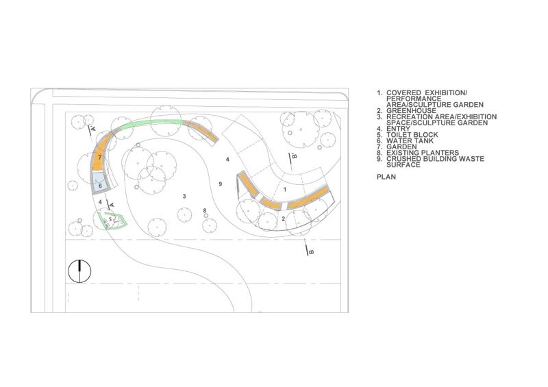 The green wall is a sculptural element in a terrain delineated by a grid of sheer facades and interstitial vacant blocks. It is a thread used to weave built form and green space together. Multiple functions are facilitated by the wall including water storage, exhibition space, garden, toilet amenities, and rest area. The space formed as the wall warps and wraps according to site influences becomes exhibition, performance and recreation space, while the wall itself is a blank canvas to be completed by the artistic and productive green expressions of those engaged in youth programs, the existing gardening community and those attracted by the vibrant happenings in the park.