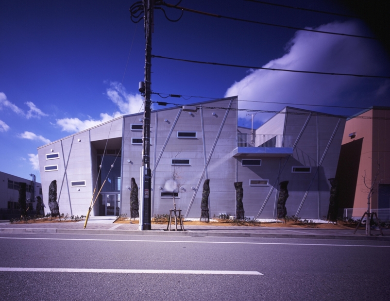 Kobe Portisland Factory is a new metalworking factory constructed on the industrial are of Kobe Port Island. In Japanese industrial areas, rather than visual design, the productiveness, effectiveness and low cost are only considered. These facts creates visually boring and mentally solitary environment. I challenge to create newly and architecturally unique building with common materials for industrial buildings.