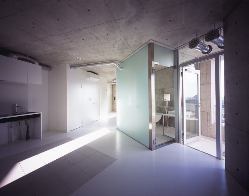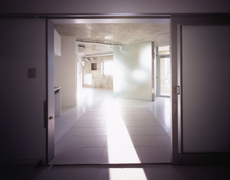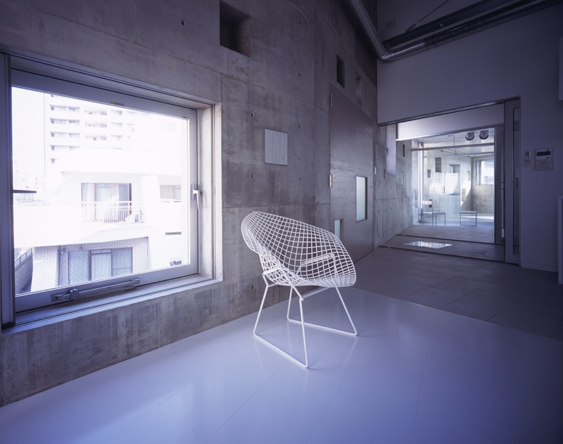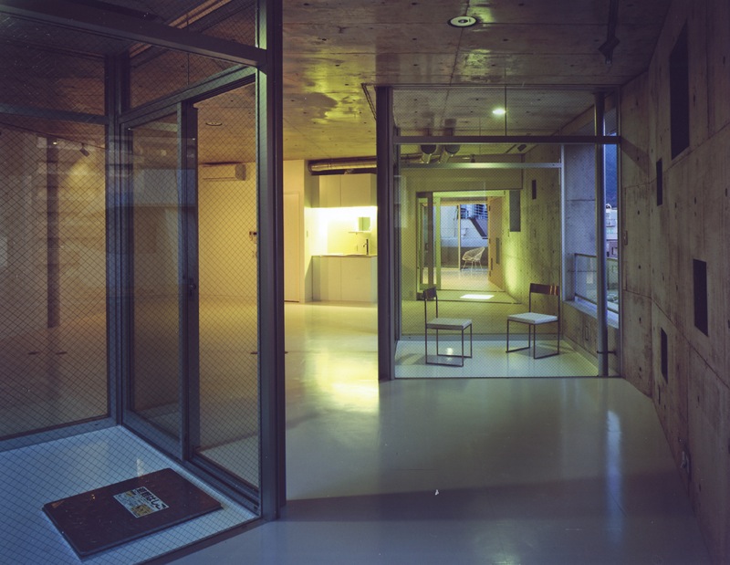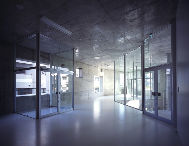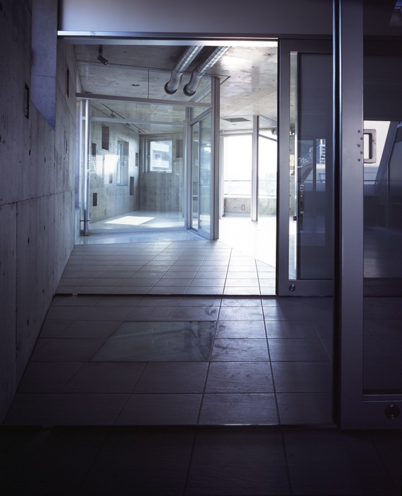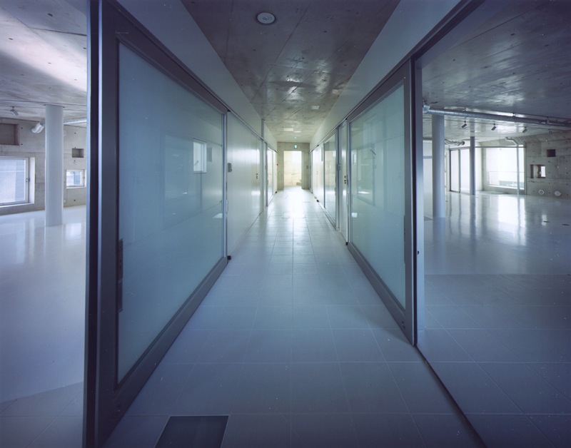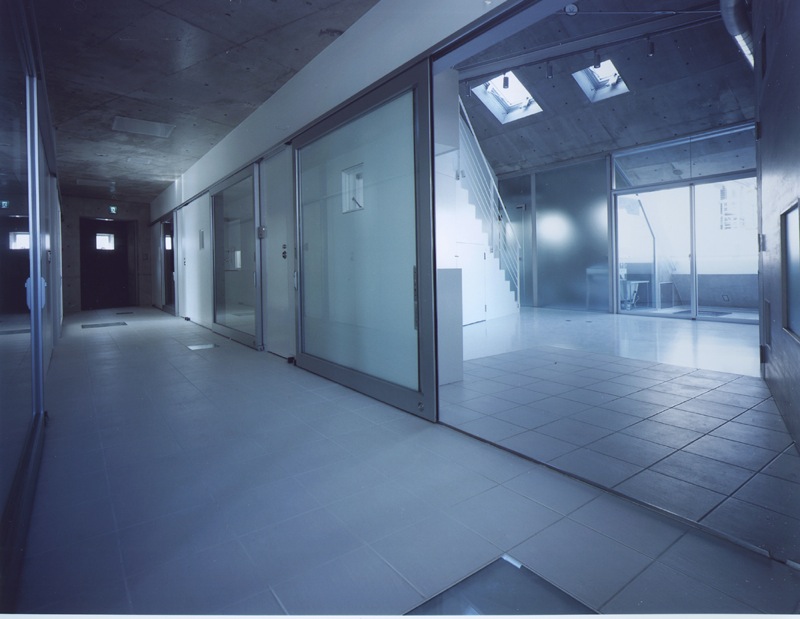 3~5Fは、中廊下から各テナントスペースにアプローチする計画で、廊下とテナントスペース間の出入り口には、2m角のガラス引き戸を設け、テナント内部にバッファースペースとしての土間空間を設けた。ここでは各テナント同士が、この建物内で相互に情報を発信し、コミュニケーションを取ることが可能なスペースとして計画した。