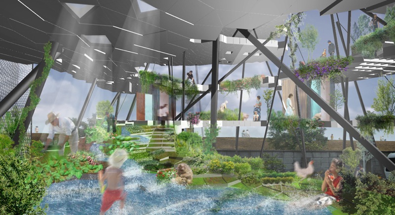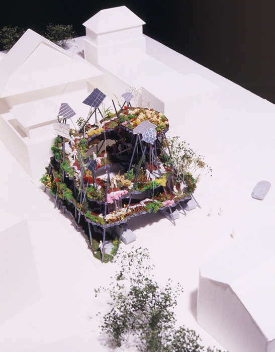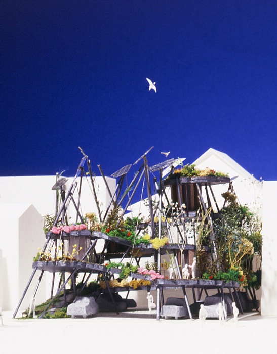 This is plantation project in urban area of Osaka. The site is owned by a kindergarten nearby Yodo River in Osaka City. Even though there was a project planned to build apartment housing in this site, the project was cancelled and instead, a parking lot was built. Similarly around here, many old houses are demolished and parking lots are created. Although the lots have only single function, they take many spots in the city. It seems to create uninteresting and wasteful spaces in the city. This project introduces an innovative way to utilize the parking lots. We suggest creating spaces for children and the community around here to produce agricultural products and energy on the artificial ground go up to the sky, “The Spiral Field.”