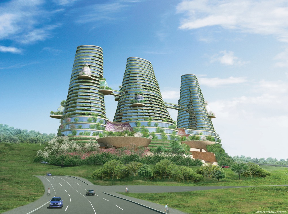 The proposal for this multifunctional building, featuring an international business center and hotel, located in the city of Yerevan, the capital of Armenia. This city is dominated by the views of Mount Arayan, a 5737m high mountain, which is recognized as the national symbol of the country. This high rise building was not conceived just a compendium of technology, but as a natural extension of the land in where it is located. This concept gives birth to the term “Mount Yerevan, paying tribute to the mountain. The building stands as a man-made topography that stablish a symbiotic relation with the environment, being a catalyzer for the regeneration of the area. Three towers are erected over a common base, whose gentle slopes make room for growing plants and fruit trees; livestock can move freely across the area, completing the cycle of natural around this new complex.